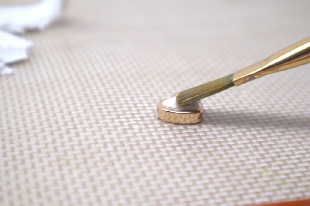 Once cooled, apply a sealant in a finish of your choice to the top of the earrings being careful to only apply it to the clay and let it dry completely. I used Mod Podge Super Gloss.